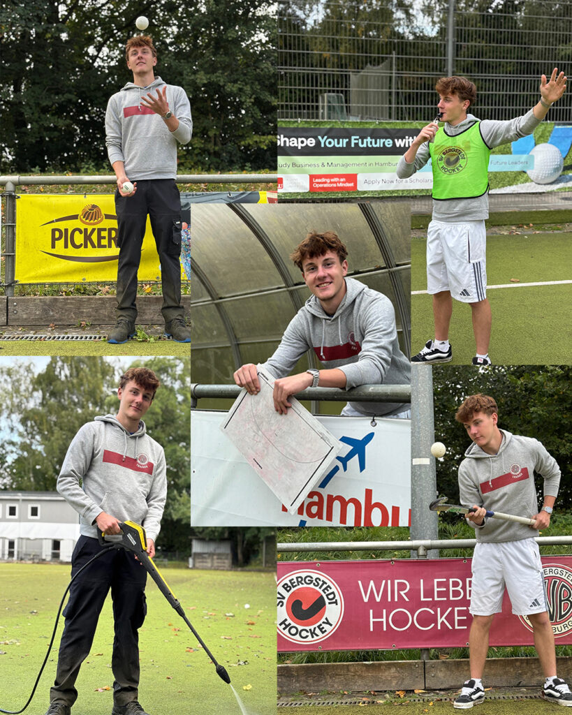 Er ist erst 18 Jahre alt und hat schon reichlich SVB-Vereinsgeschichte im Gepäck. Unser FSJler (Freiwilliges Soziales Jahr) Leander ist ein echtes Bergstedt-Kind. Vor etwa 13 Jahren kam er über das blau-rote Anhockeln-Plakat auf unseren Platz, ohne vorher jemals von unserer Lieblingsbeschäftigung mit Stock und Kugel gehört zu haben. Heute spielt Leander fest bei unseren 1. Herren und kennt jede Ecke des Clubs, der Anlage und alles, was dazu gehört. Damit startet Leander mit den besten Voraussetzungen für ein Freiwilliges Soziales Jahr bei uns beim Hockey.